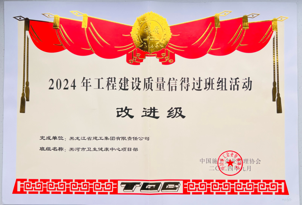 黑河市衛(wèi)生健康中心項(xiàng)目部2024年工程建設(shè)質(zhì)量信得過班組活動改進(jìn)級